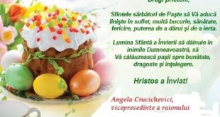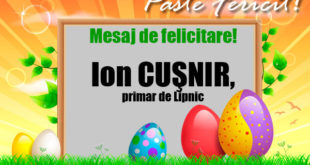 Stimaţi locuitori ai comunei Lipnic! Primiţi cele mai sincere şi cordiale felicitări cu prilejul Sfintelor sărbători de Paşti! Vă doresc ca Bunul Dumnezeu să fie mereu alături, să vă lumineze gândurile şi faptele, să vă umple inima cu dragoste şi speranţe. Păstraţi-vă în suflet o dragoste pură faţă de …