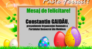 Stimaţi memri ai echipei Partidului Democrat din Moldova,raionul Ocniţa! Stimaţi locuitori ai întregului raion! Vă felicit călduros cu venirea Sfintelor Sărbători! Învierea Domnului să vă umple sufletul de lumină, ochii de lacrimile bucuriei, mintea de gânduri frumoase şi inima de iubire! Bucuria şi simplitatea acestor momente ne ajută să ne …